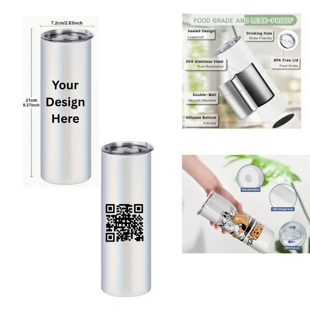 Experience a tumbler that does more than keep your drinks at the perfect temperature – it tells your story. Our Straight Skinny Stainless Steel Tumblers are fully customisable with a unique QR code linking to your favourite song, video, or photo for an unforgettable personalised gift.
